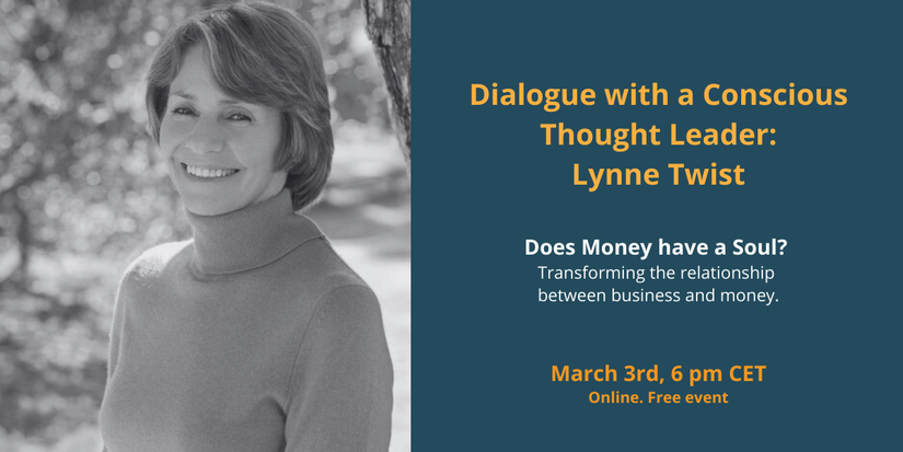 We invite you to another inspiring dialogue with Lynne Twist, author of The Soul of Money, and a conscious thought leader will join us on March 3rd to examine our relationship with money.
